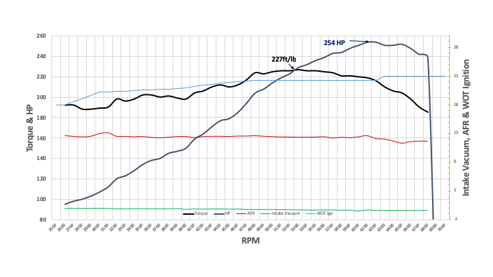 As seen on the dyno, this vehicle makes 227 lb ft of torque and 254 rwhp. This is pretty close to the output of later generations of the 964 RS, all with the weight advantage of the older body and close to the maximum that can be handled by the 915 gearbox.